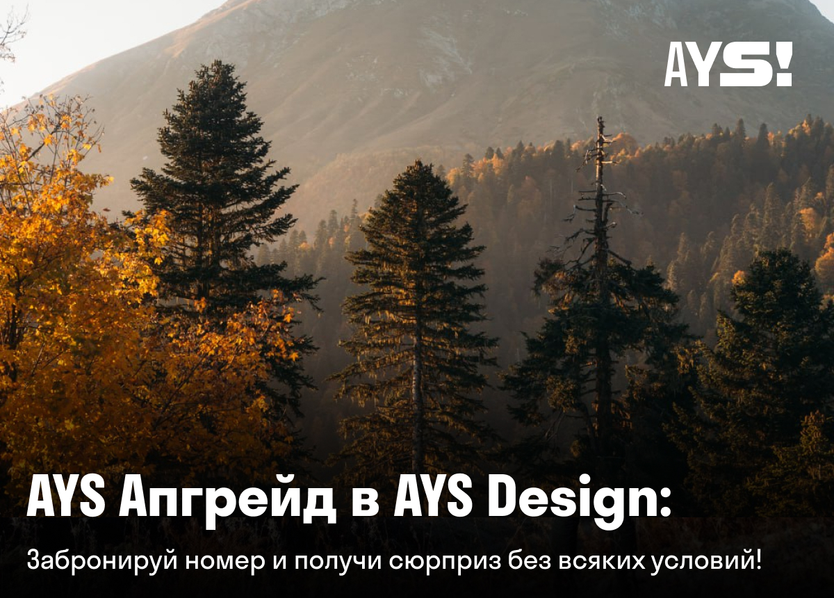 С 16 октября по 19 декабря в AYS Design ПОЛУЧИ БОЛЬШЕ, ЧЕМ БРОНИРОВАЛ! Иногда чудеса случаются не под Новый год, а в самый разгар осени — все наши гости автоматически участвуют в добром аттракционе под названием «Апгрейд за улыбку».
