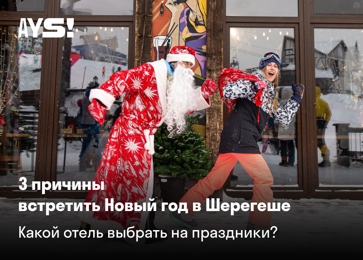 Всего месяц до Нового года! Пора определяться с планами на праздник. Хочешь встретить 2023-й в зимней сказке, загадать желание под звездным небом в горах и круто затусить с друзьями? Тогда отправляйся на горнолыжный курорт Шерегеш, а мы организуем все остальное! Рассказываем, почему Новый год в AYS — это отличная идея, а также какие варианты проживания есть в наших отелях, чтобы забронировать на праздничные даты.